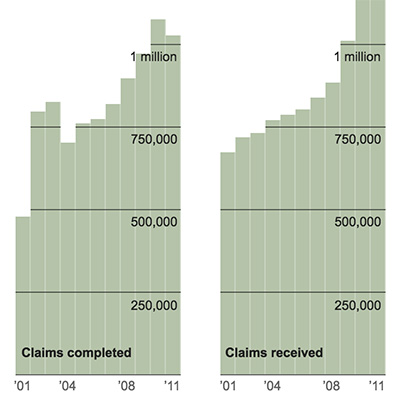 Despite a larger staff and budget to deal with the veterans' claims, the backlog keeps growing.