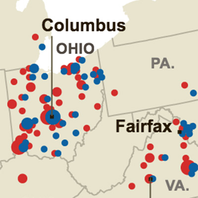 Tracking the candidates' post-convention campaign visits from swing state to swing state.
